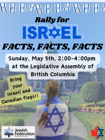 - May 5th Sunday - Rally for Israel: Legislative Assembly of British Columbia, 2:00 - 4:00pm